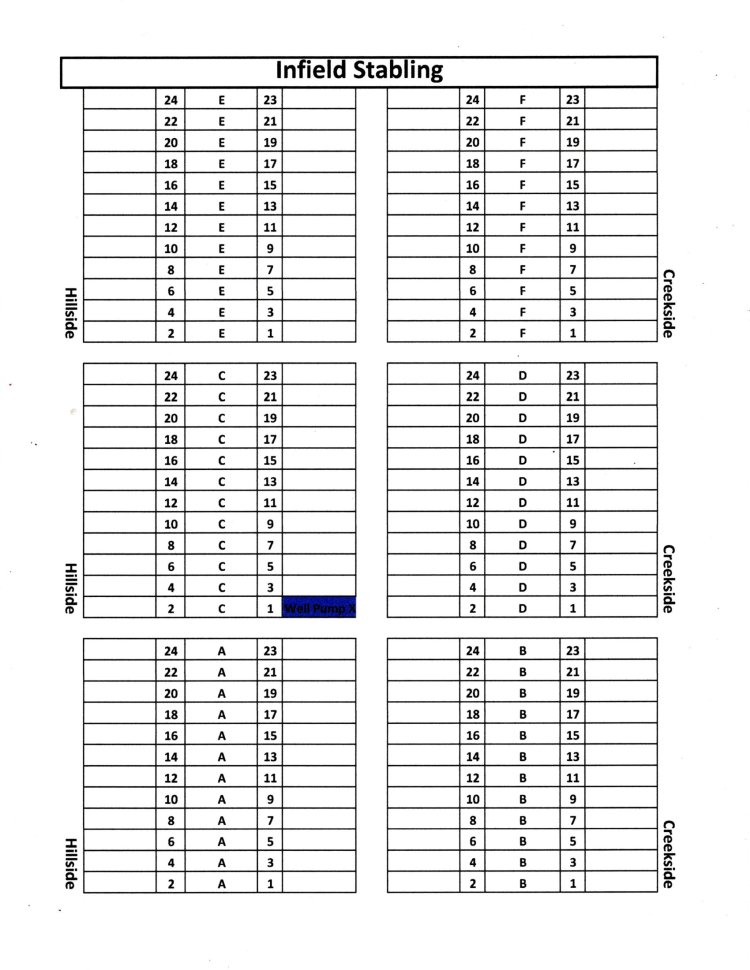 F.E.N.C.E Stabling Chart. Please call or text Heather Stanley at 256-609-5453 or email carolinaschoolingseries@gmail.com with Stall Reservations. As stalls fill up they will be colored red and updated on a daily basis until show day. Stalls are first come first serve. If you would like to reserve an open selection please let us know!